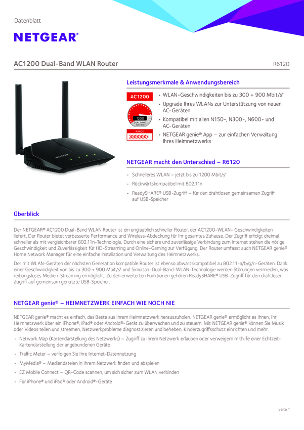 NETGEAR AC1200 Dual-Band WLAN Router Router WiFi 2.4 GHz, 5 GHz 1200 MBit/s