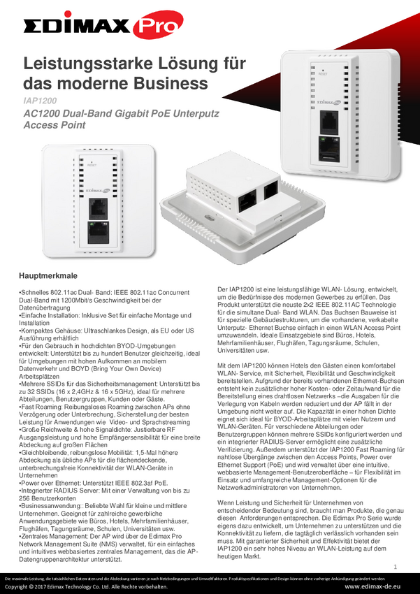 EDIMAX IAP1200 IAP1200 AC1200 Access Point WLAN 2.4 GHz, 5 GHz