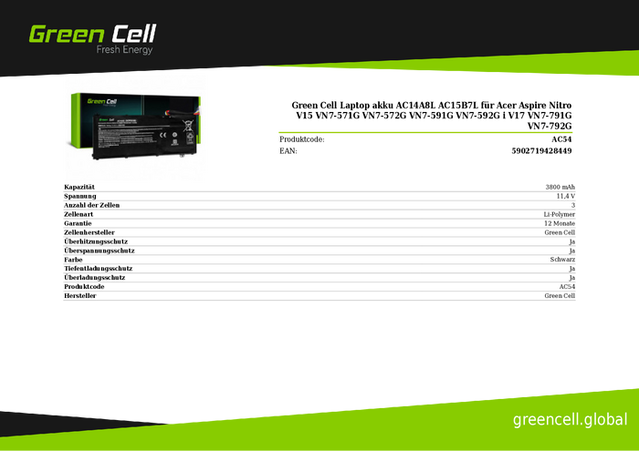 Green Cell Akumulator do laptopa AC14A8L 11.4 V 3800 mAh Acer