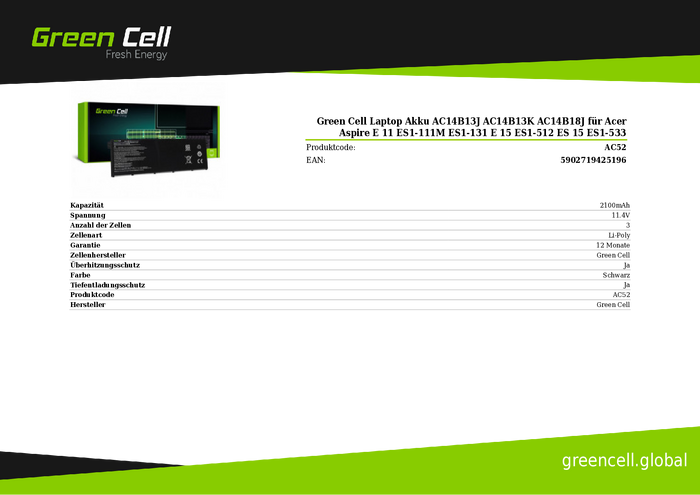 Akumulator do laptopa Green Cell AC52, 11.4 V, 2100 mAh