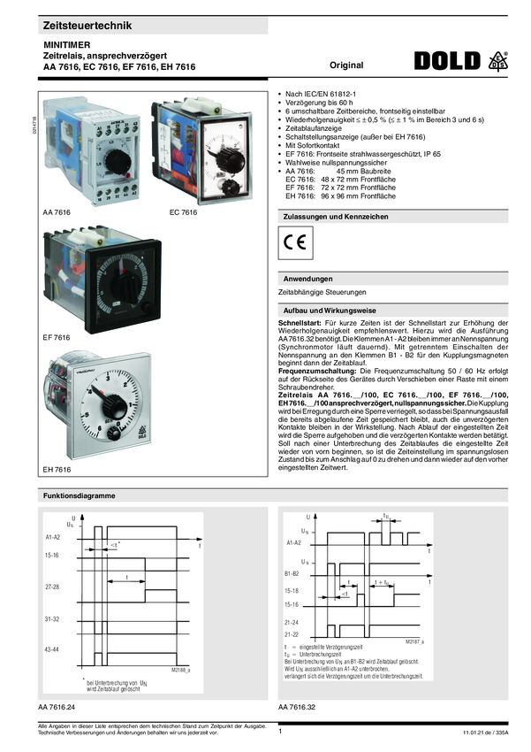 Przekaźnik czasowy Dold EF7616.24 AC50/60Hz 230V 0,2s-60h 0024457, 0.2 s - 60 h, 230 V/AC, 4 A, 1 szt.