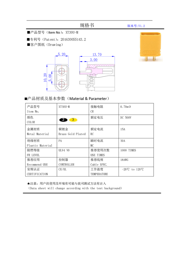 Złącze męskie akumulatora XT30U, 2 mm gniazdo Reely RE-6619107 pozłacane, do lutowania 1 szt.