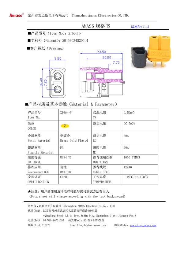 Złącze męskie akumulatora XT60H Reely RE-6702309 pozłacane 1 szt.
