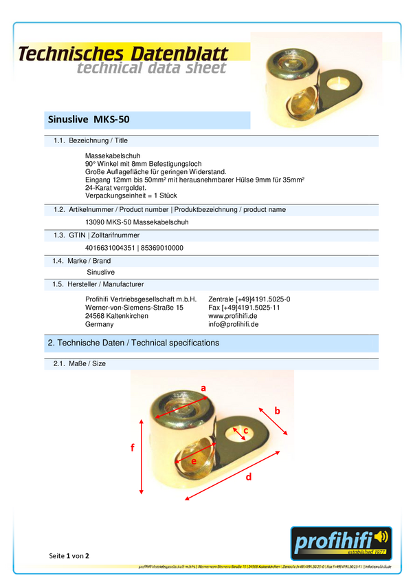 Końcówka zacisku uziemienia Sinuslive MKS -50, pozłacane