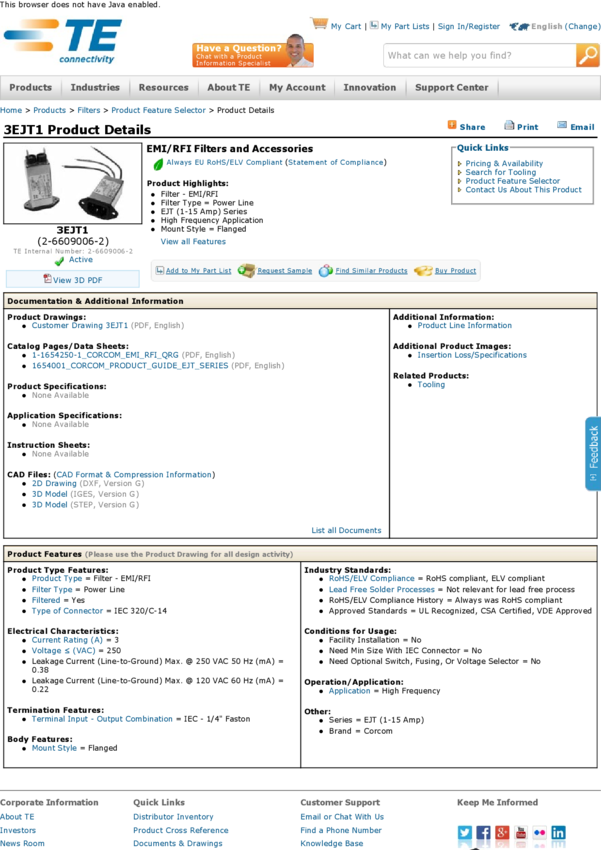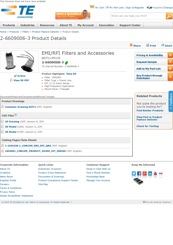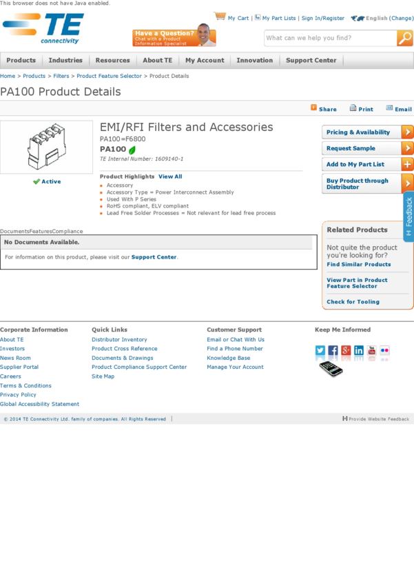 Connector Accessories EMI/RFI Filter Power Interconnect Straight