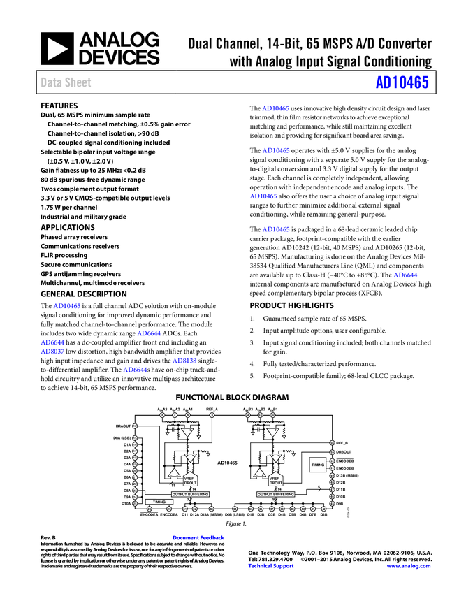 Dual Channel, 14-Bit, 65 MSPS A/D Converter With Analog Input Signal Conditioning