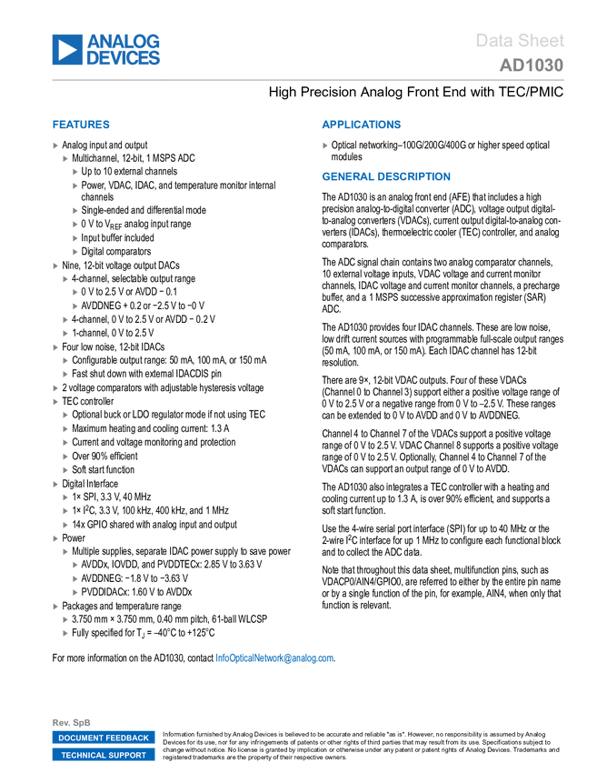 Dual Channel, 12-Bit, 40 MSPS MCM A/D Converter with DC-Coupled Analog Input Signal Conditioning (AD9042 Core ADC)