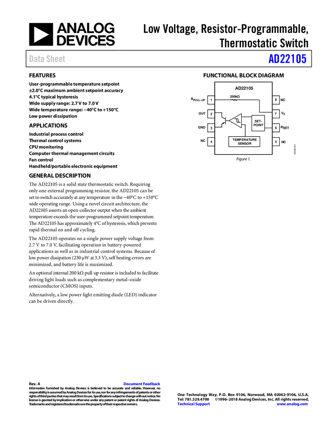 Low Voltage, Resistor Programmable Thermostatic Switch