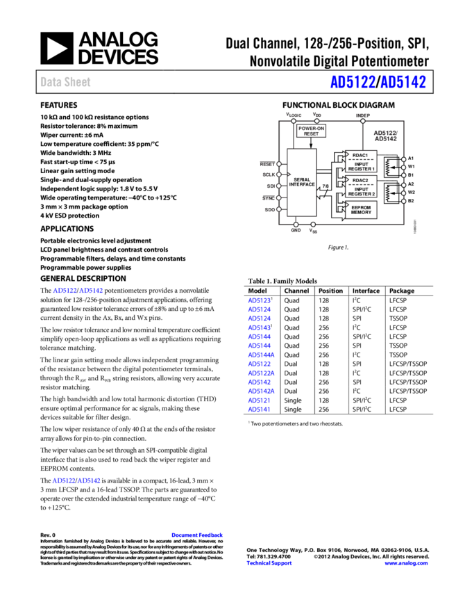 Dual Channel, 256-Position, SPI, Nonvolatile Digital Potentiometer