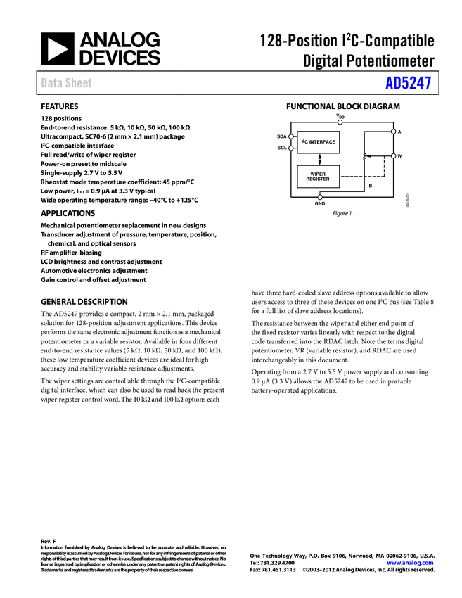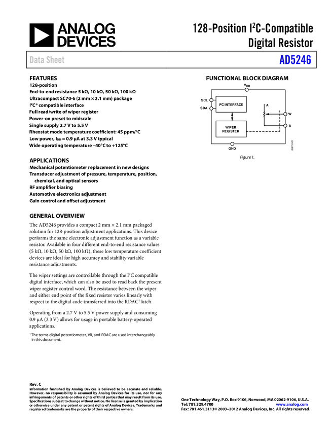 128 Position IC Compatible Programmable Resistor in SC70 Package