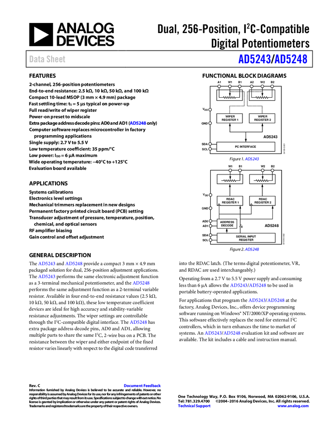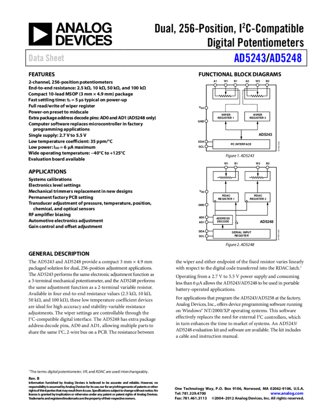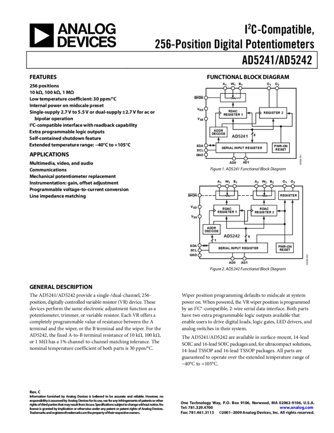 256-Position Dual Channel IC Compatible Digital Potentiometer