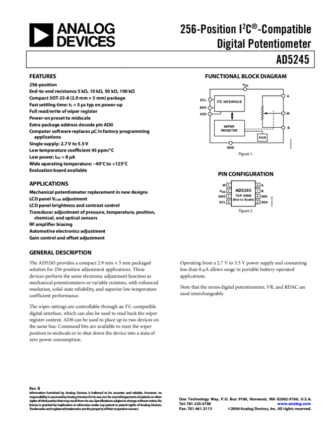 Dual-Channel, IC Compatible, 256 Position, Digital Potentiometer