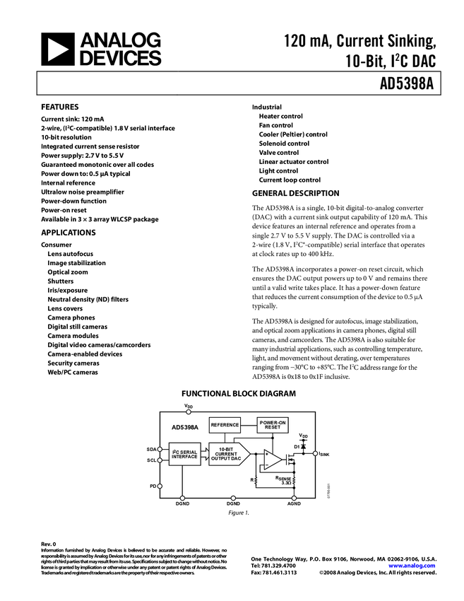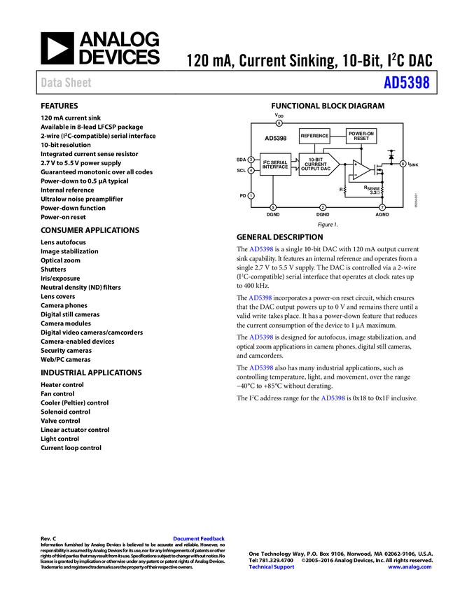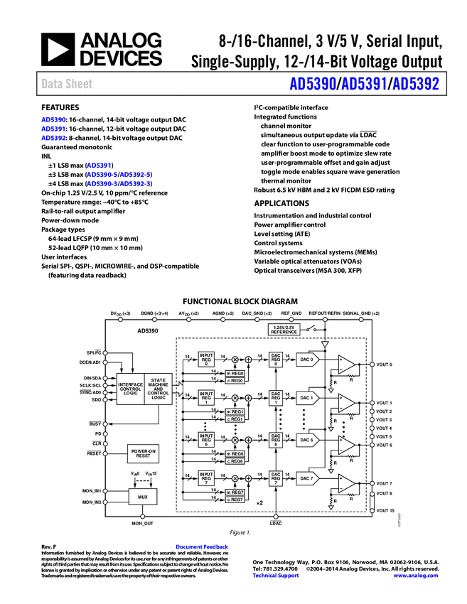 AD5392: 8-Channel 3 V/5 V Serial Input Single-Supply 14-Bit Voltage-Output
