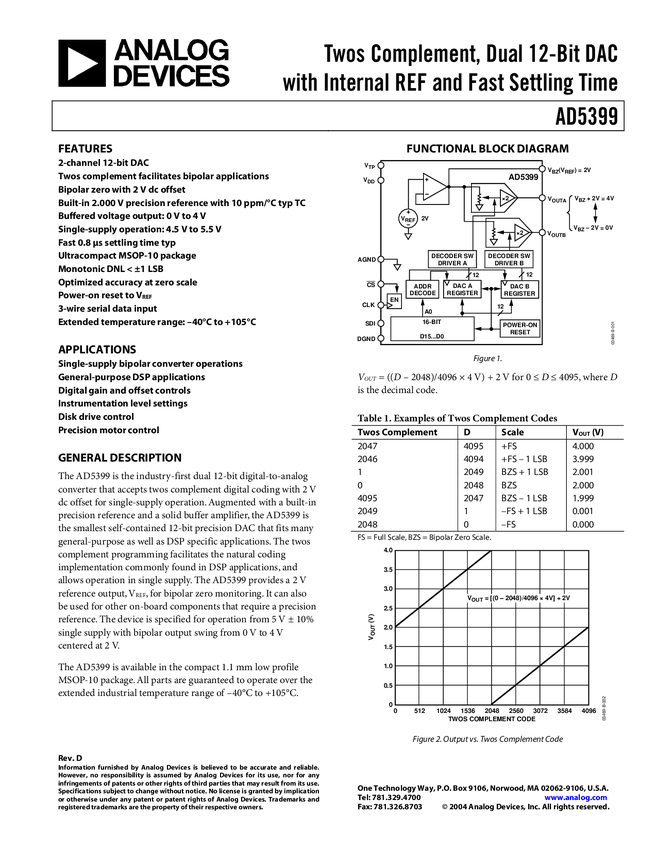 Two's Complement, Dual 12-Bit DACs, Internal REF