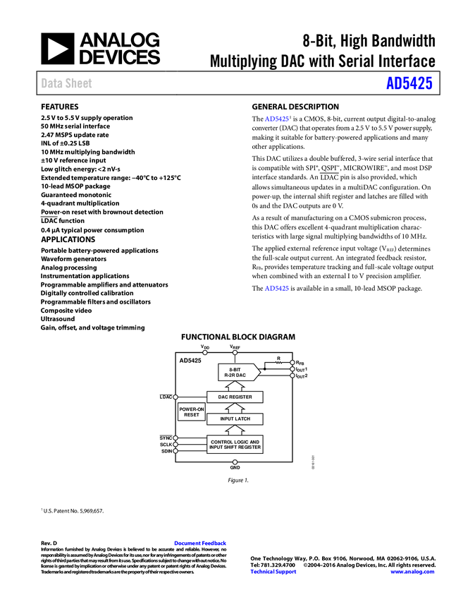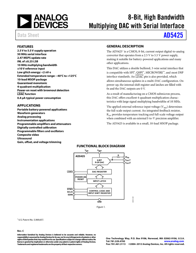 AD5425: 8-Bit, High Bandwidth, Multiplying DAC with Serial Interface