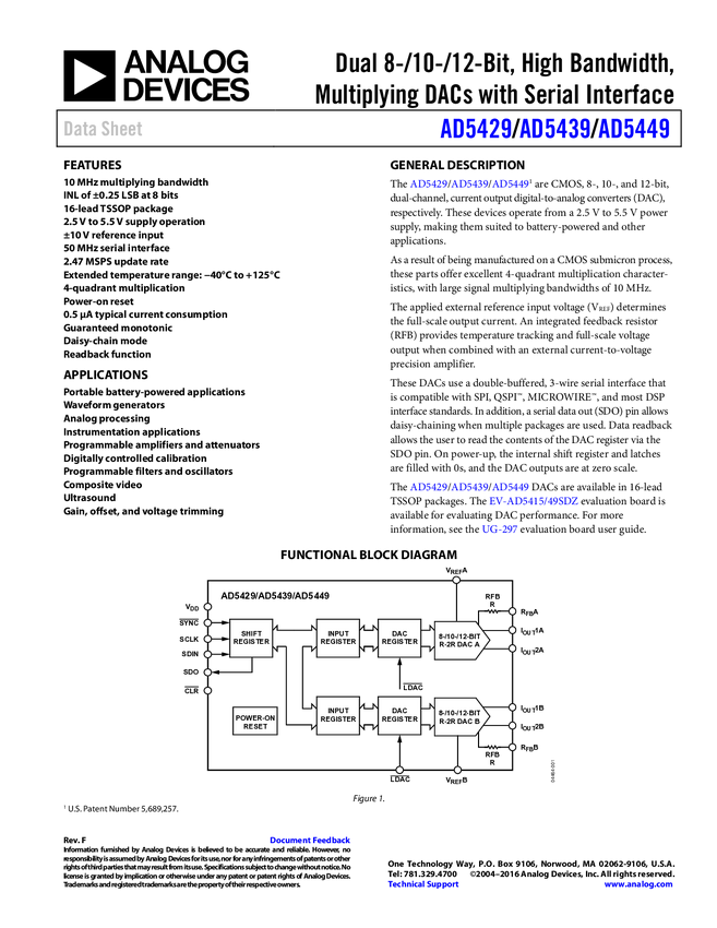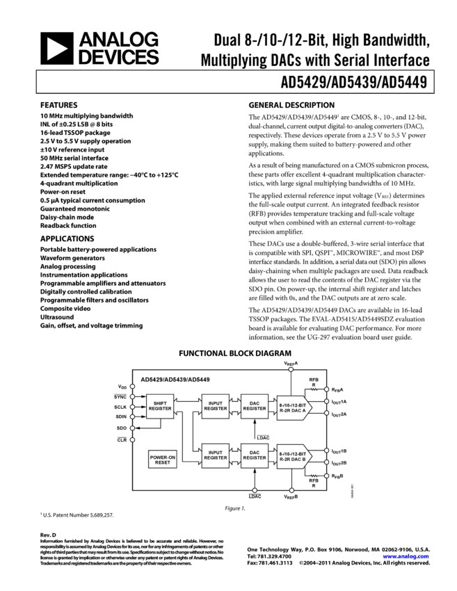 AD5449: Dual 12-Bit, High Bandwidth Multiplying DAC with Serial Interface