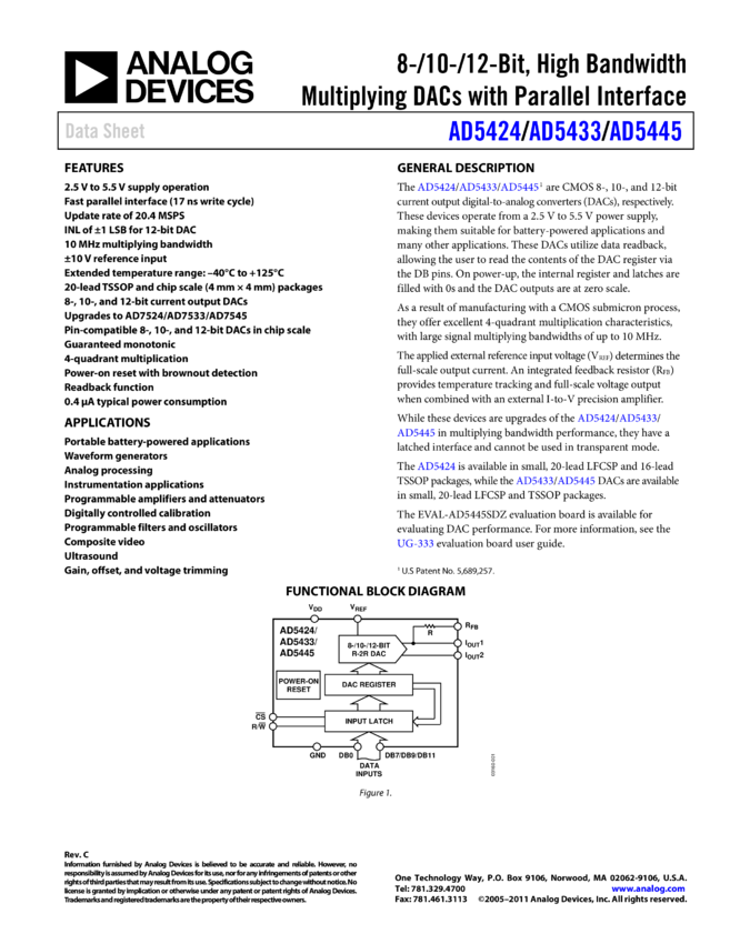 AD5445: High Bandwidth 12-Bit Parallel Interface Multiplying D/A Converter