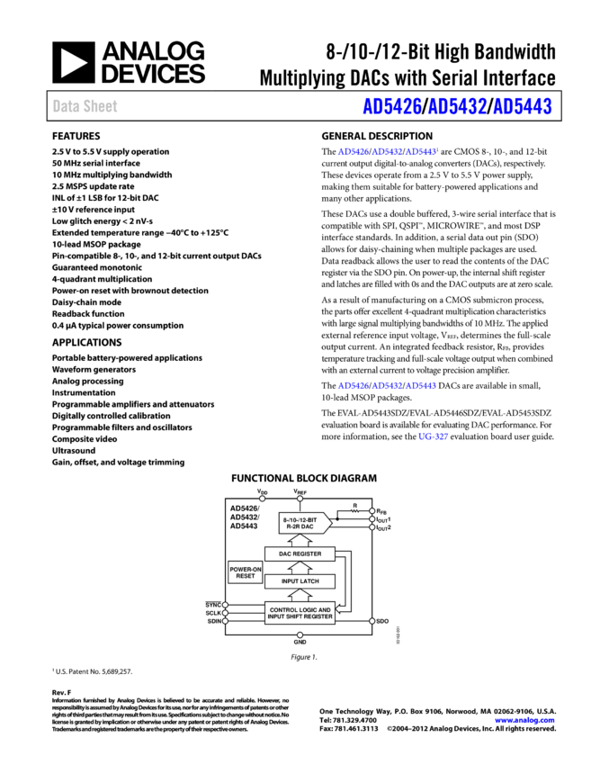 AD5443: 12-Bit High Bandwidth Multiplying DAC's with Serial Interface