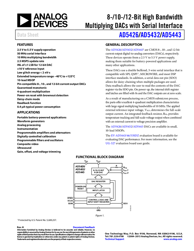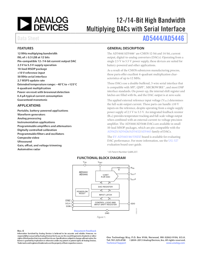 AD5444: 12-Bit High Bandwidth Multiplying DAC with Serial Interface including a Serial Data Output line