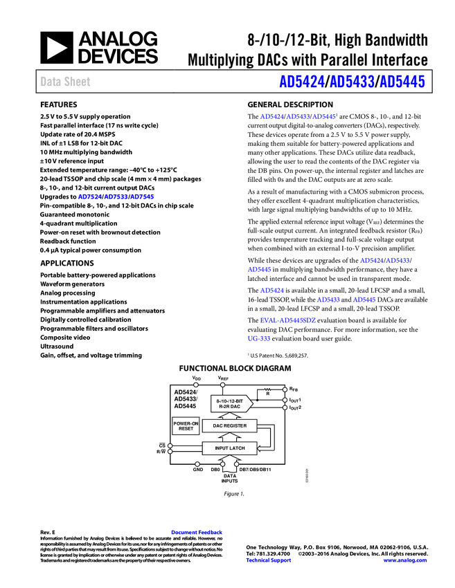 AD5445: High Bandwidth 12-Bit Parallel Interface Multiplying D/A Converter