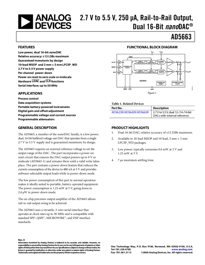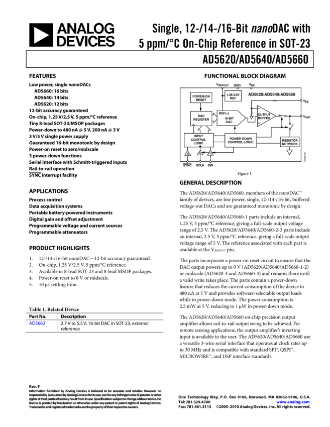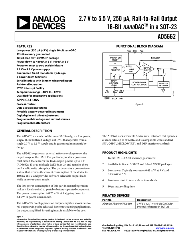AD5660: Single, 16-Bit DAC® with 5 ppm/°C On-Chip Reference