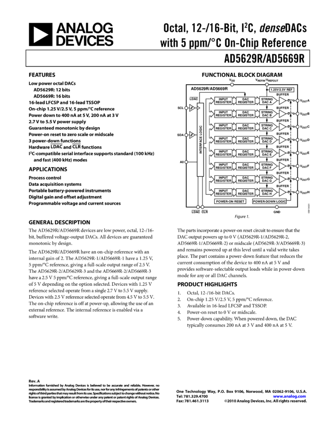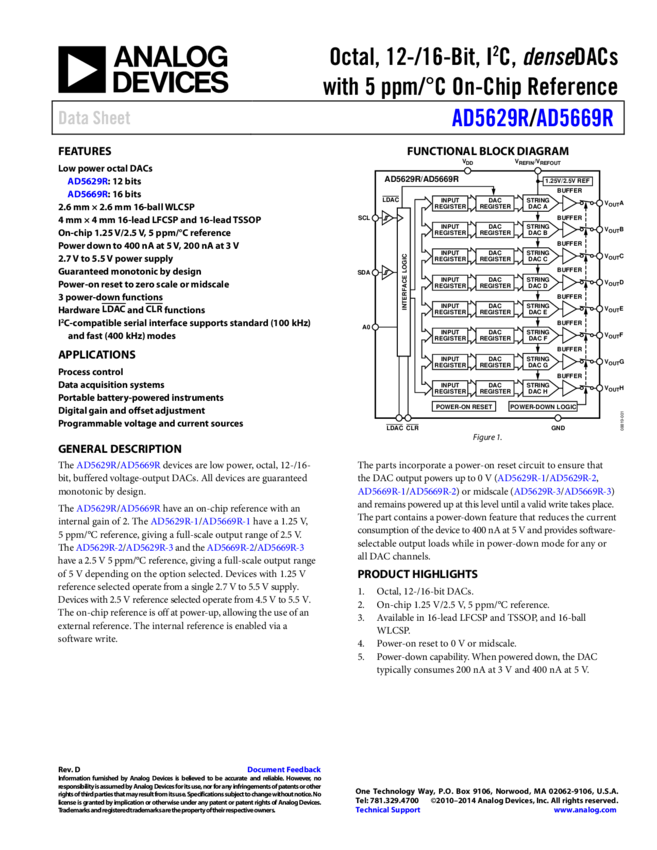 AD5669R: Octal, 16-bit, IC Voltage Output DAC with 5 ppm/°C On-Chip Reference