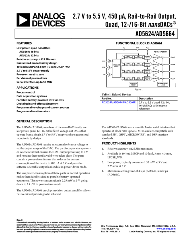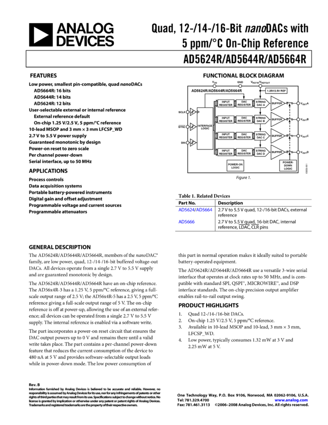 AD5664R: Quad, 16-Bit DAC® with 5ppm/°C On-Chip Reference