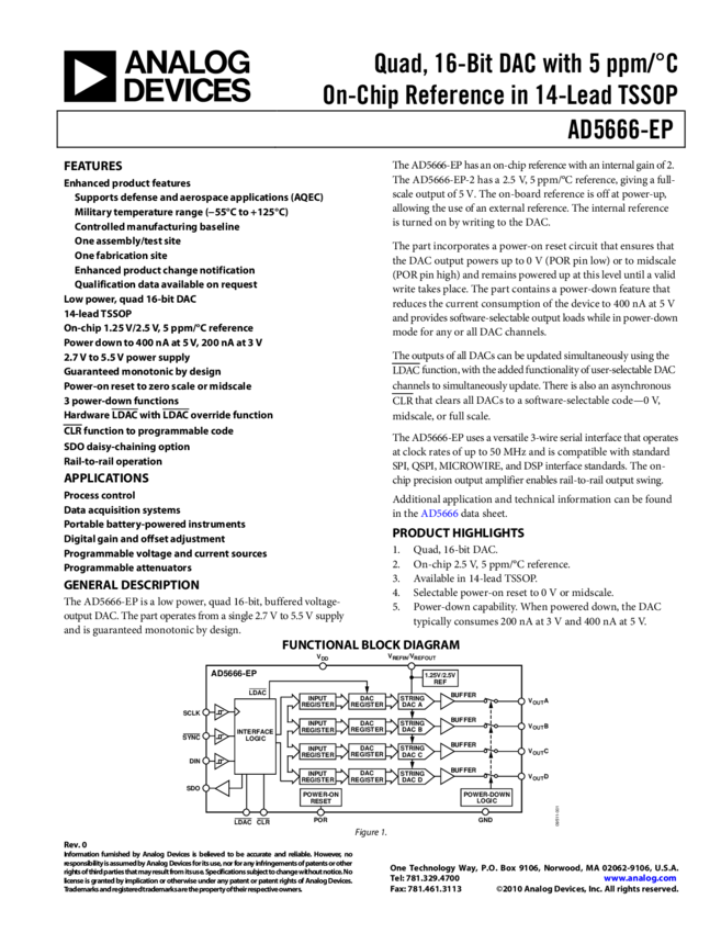 AD5666: Quad, 16 Bit D/A Converter with 10/°C Max On-Chip Reference in 14-Lead TSSOP