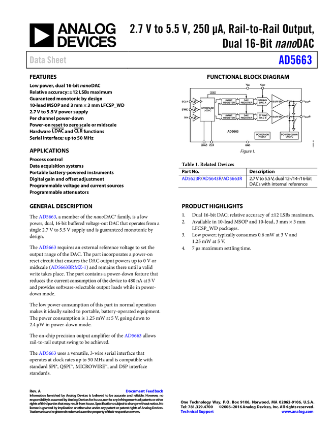 AD5663R: Dual 16-Bit DAC® with 5 ppm/°C On-Chip Reference