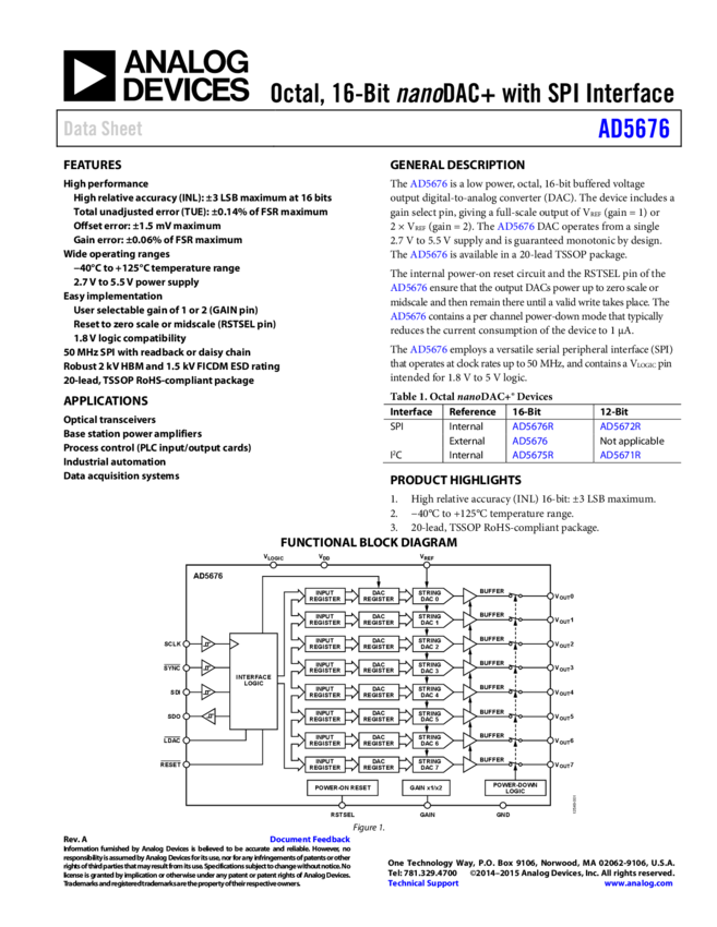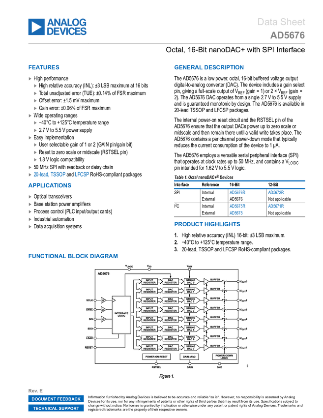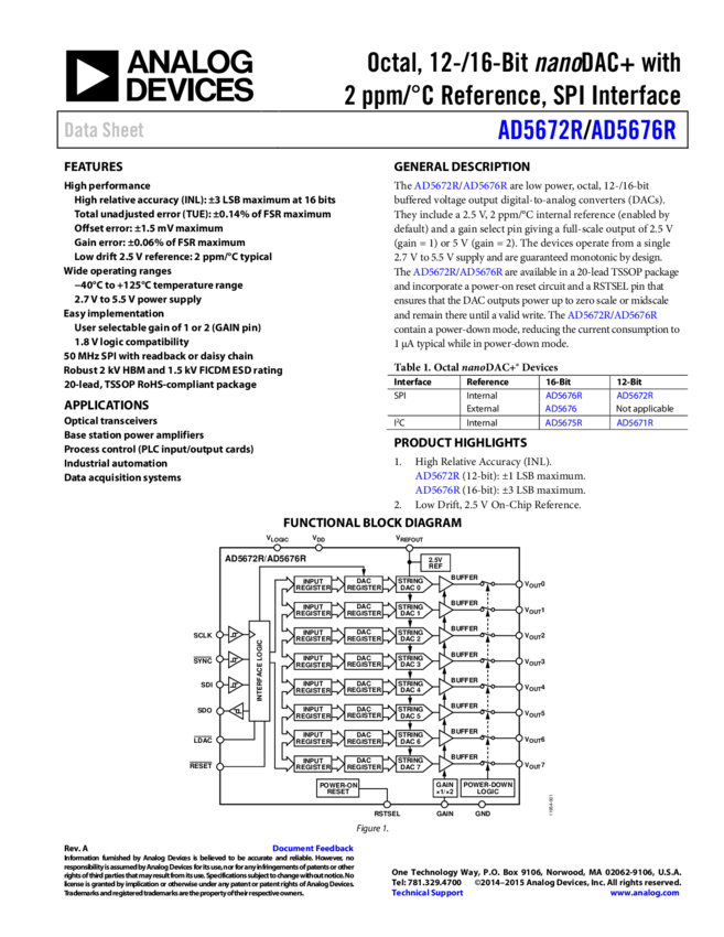 4 x 12-Bit and 4 × 16-Bit Octal D/A Converter with On-Chip Reference in 14-Lead TSSOP