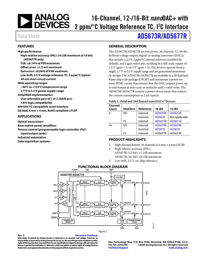 Octal, 16-Bit nanoDAC+ with I2C Interface