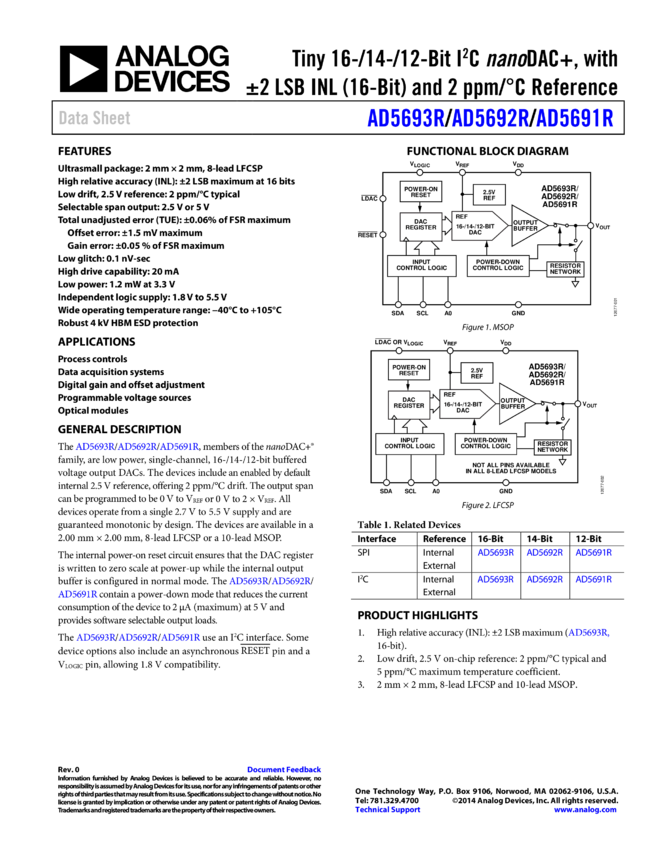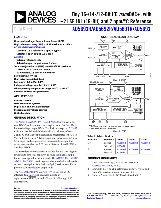 AD5693R: Tiny 16-Bit IC DAC+, with ±2 (16-Bit) LSB INL and 2 /°C Reference