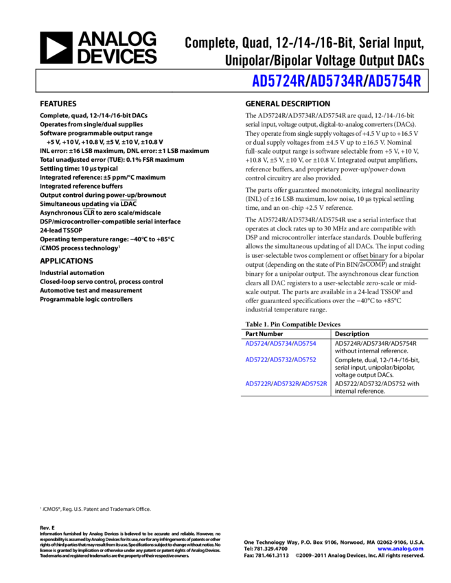 Complete, Quad, 12-Bit, Serial Input, Unipolar/Bipolar Voltage Output DACs