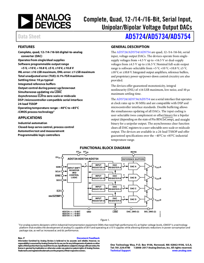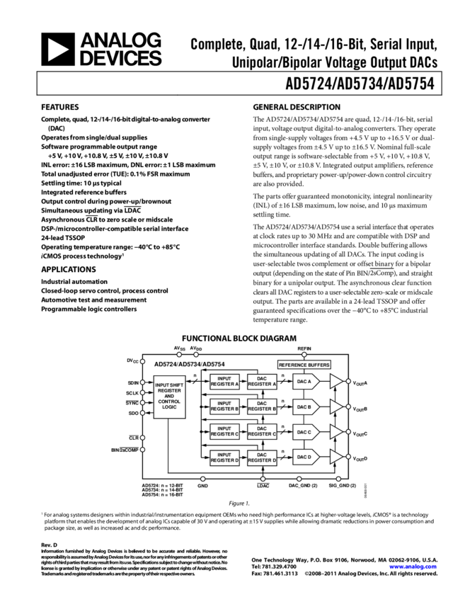 Complete, Quad, 14-Bit, Serial Input, Unipolar/Bipolar Voltage Output DAC