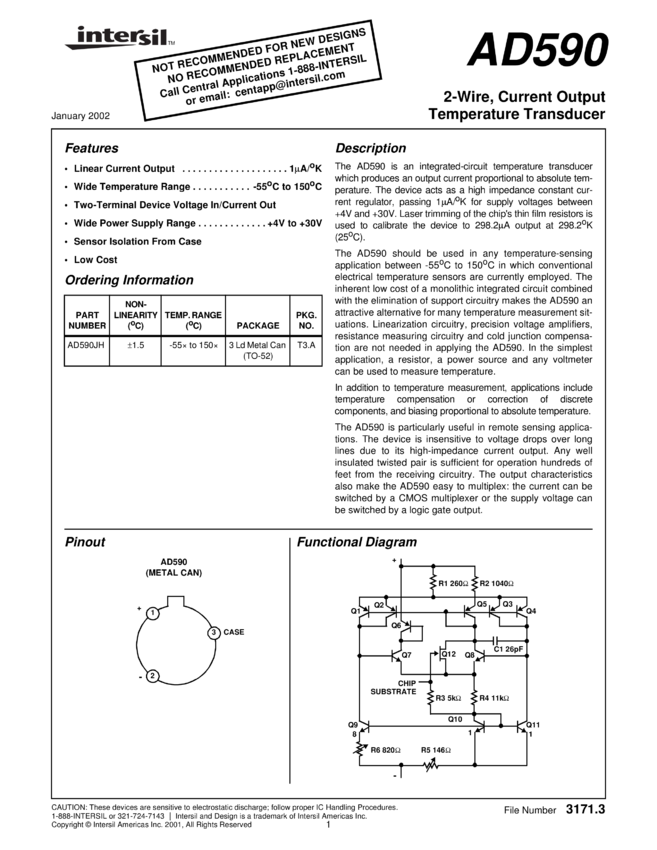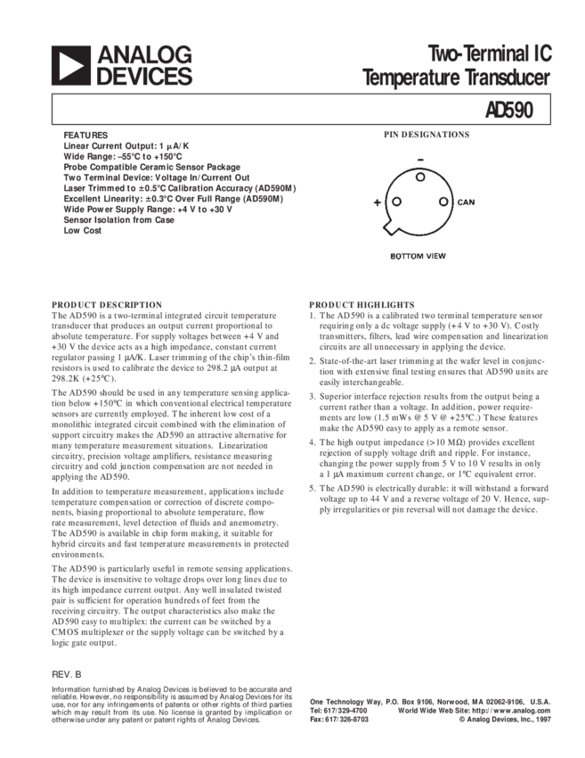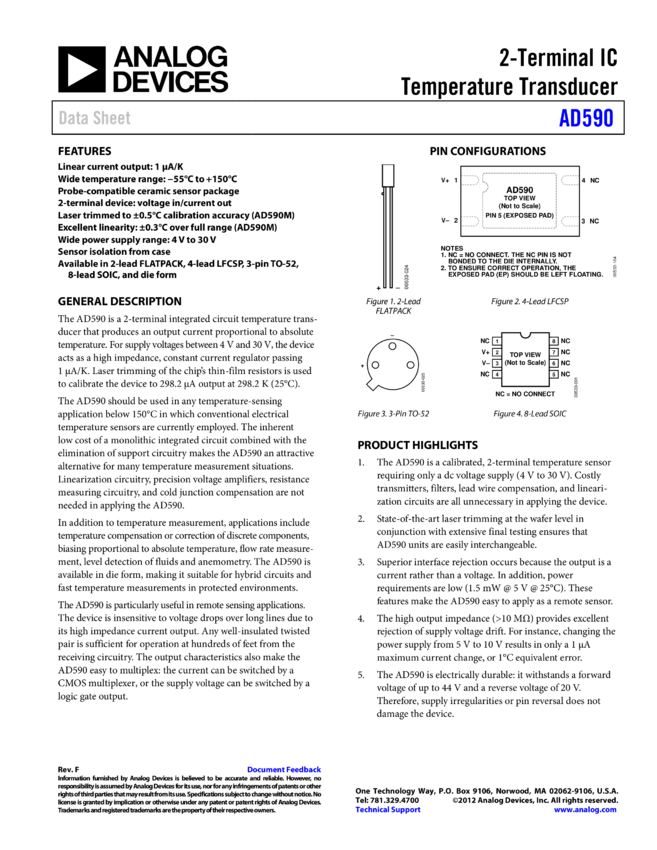 Aerospace 2 Terminal Temperature Transducer, 1uA/°K