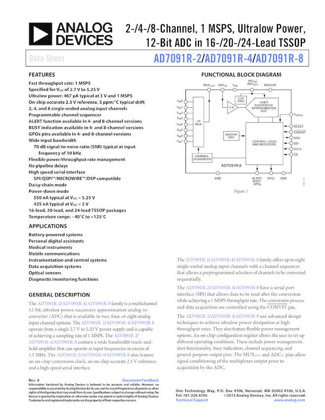 AD7091R-8: 8-Channel, 1 MSPS, Ultralow Power, 12-Bit ADC in 24-Lead TSSOP