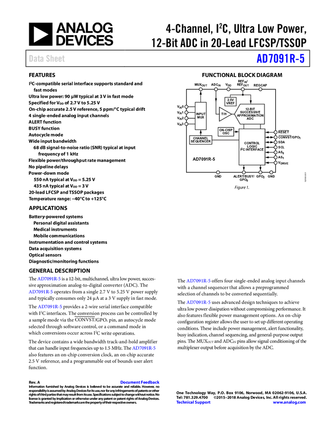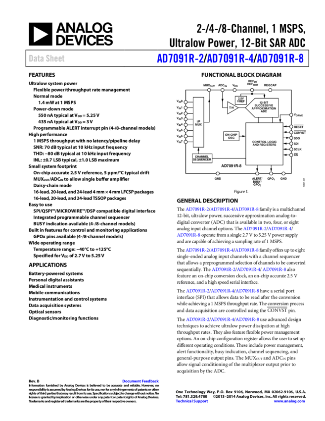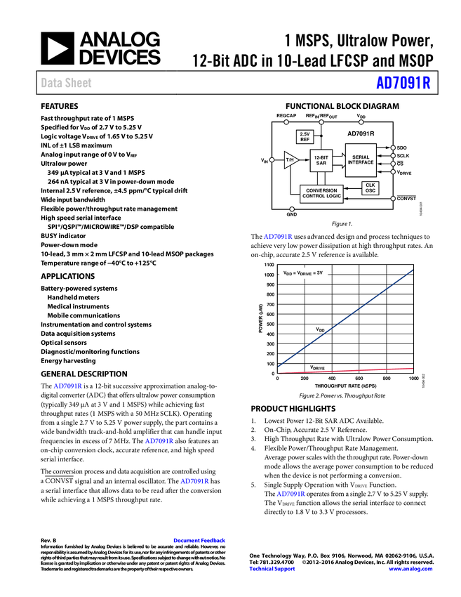 AD7091R: 1 MSPS, ULTRALOW POWER, 12-BIT ADC WITH ON-CHIP REFERENCE IN 10-LEAD LFCSP AND MSOP