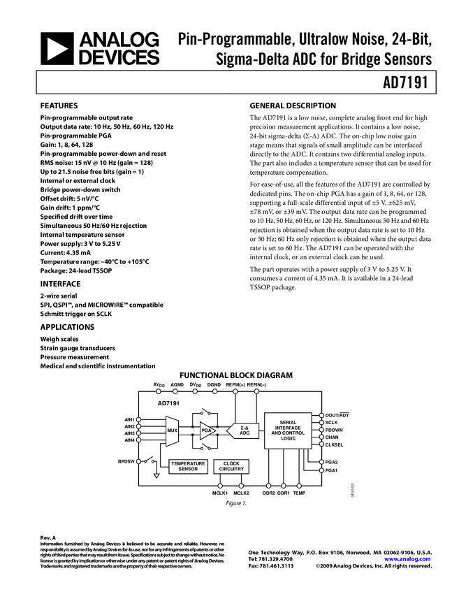 AD7191: Pin-Programmable, Ultralow Noise, 24-Bit, Sigma-Delta ADC for Bridge Sensors