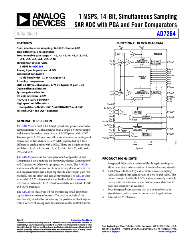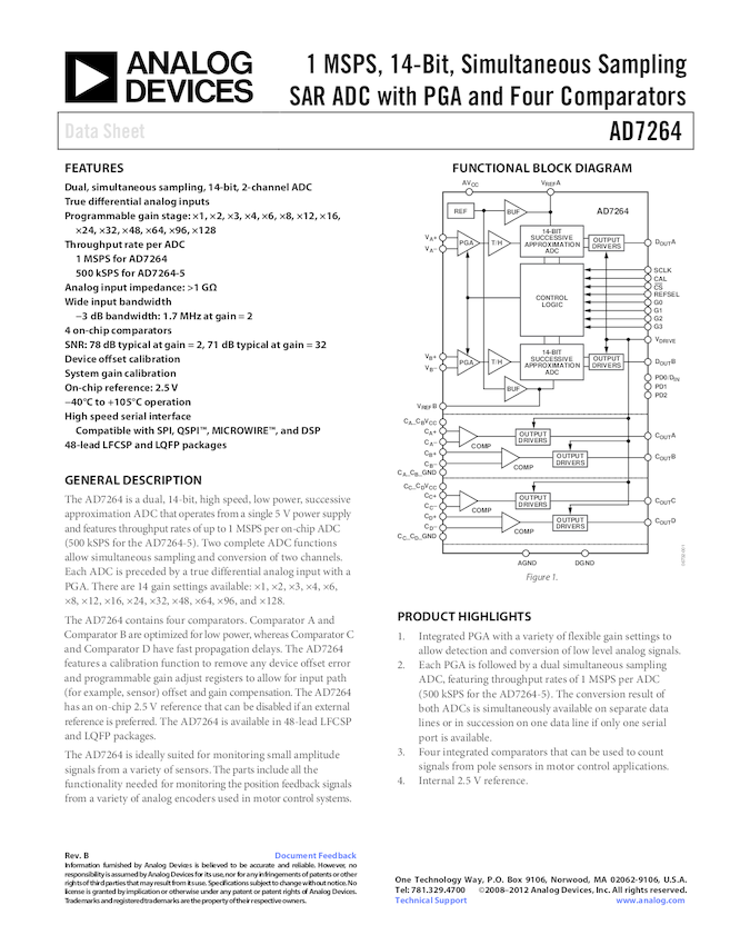 AD7264: True Differential, Dual, 1 MSPS, 14-Bit/12-Bit, 2-Channel SAR ADC With PGA