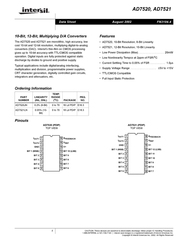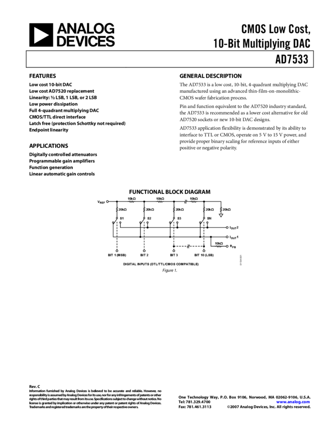 CMOS Low Cost, 10-Bit Multiplying DAC
