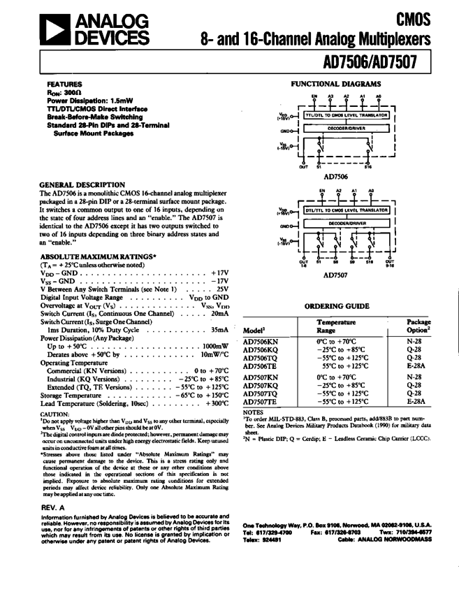 The AD75019 Contains 256 Analog Switches in a 16 x 16 Array