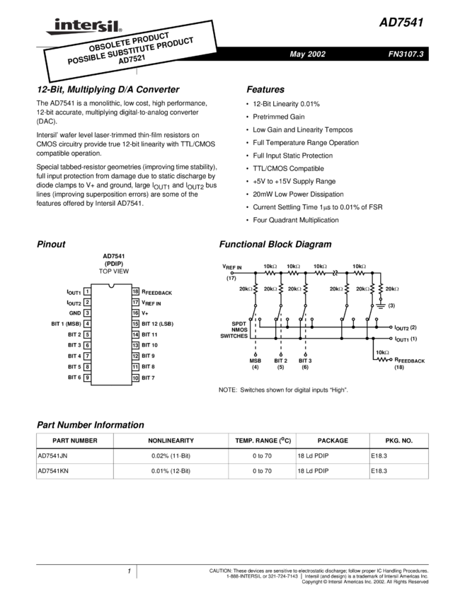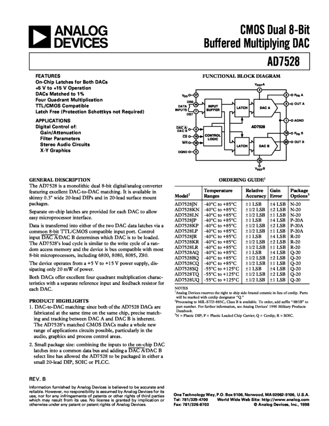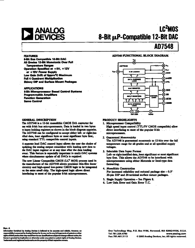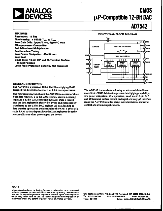 12-Bit, Multiplying, I DAC, 8-Bit Bus