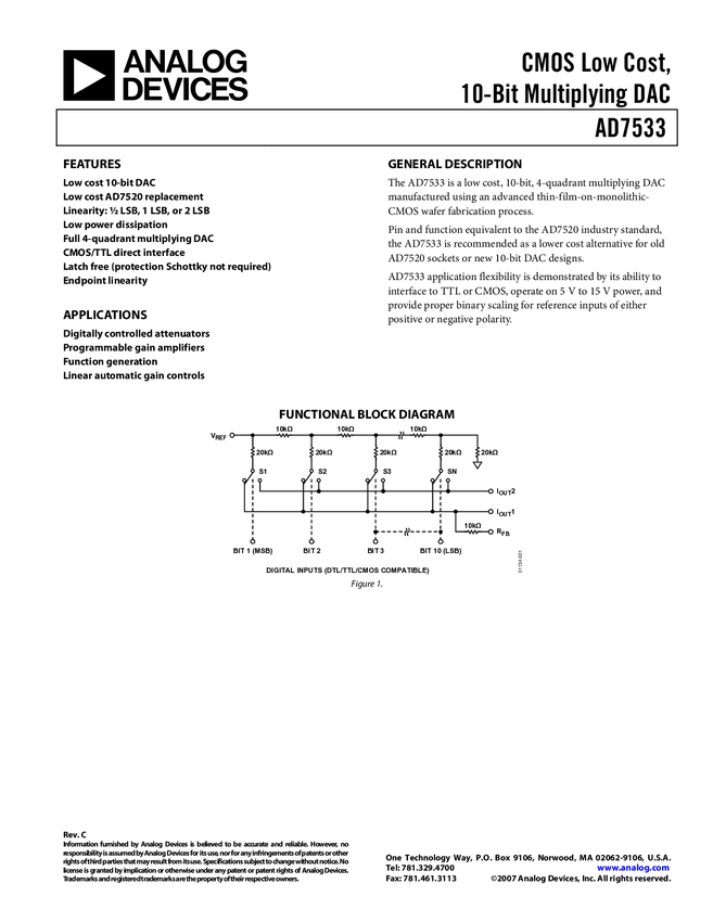 CMOS Low Cost, 10-Bit Multiplying DAC