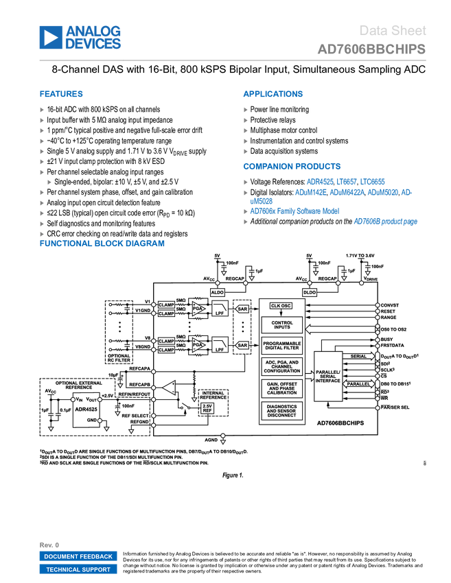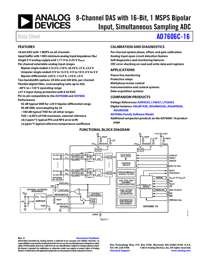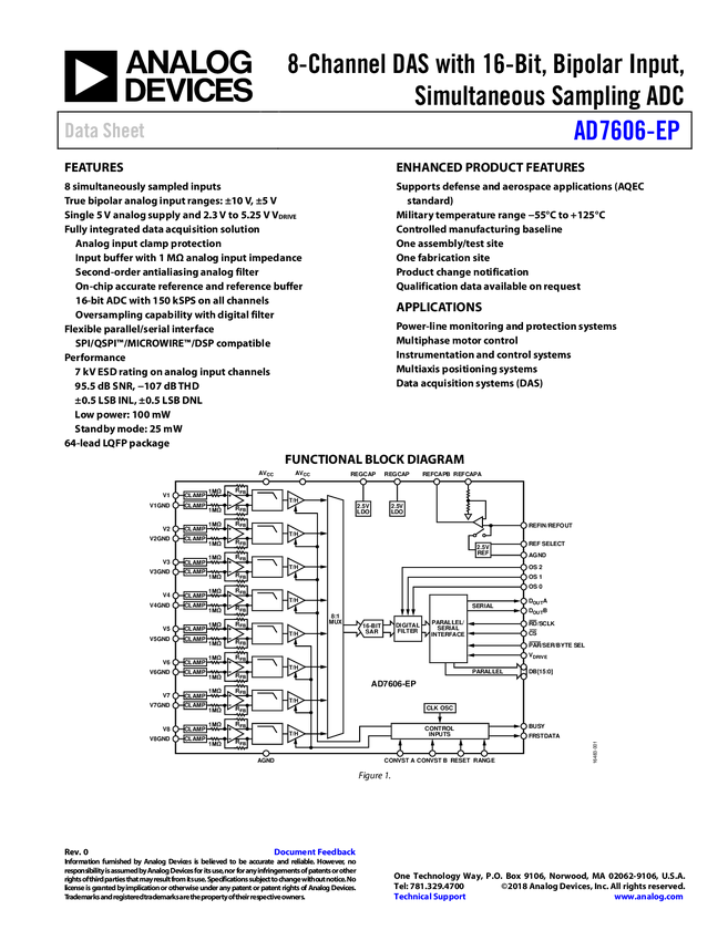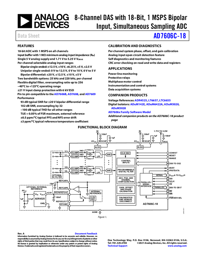 AD7609: 8-Channel Differential DAS with 18-Bit, Bipolar, Simultaneous Sampling ADC