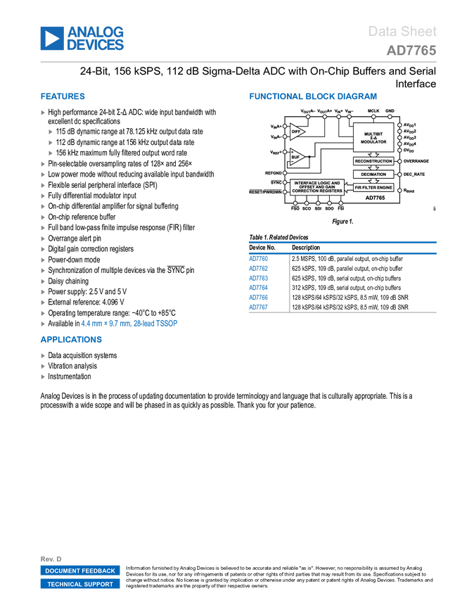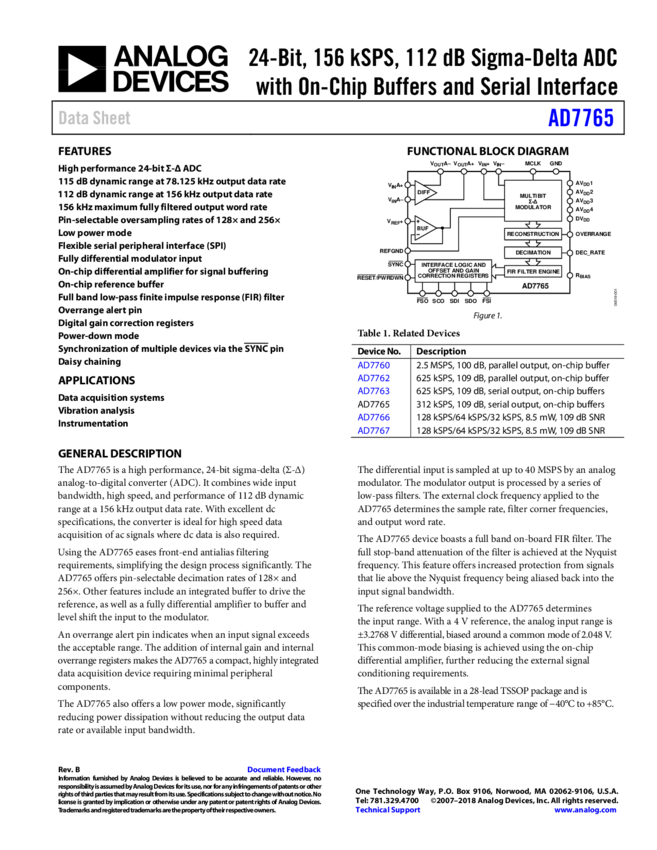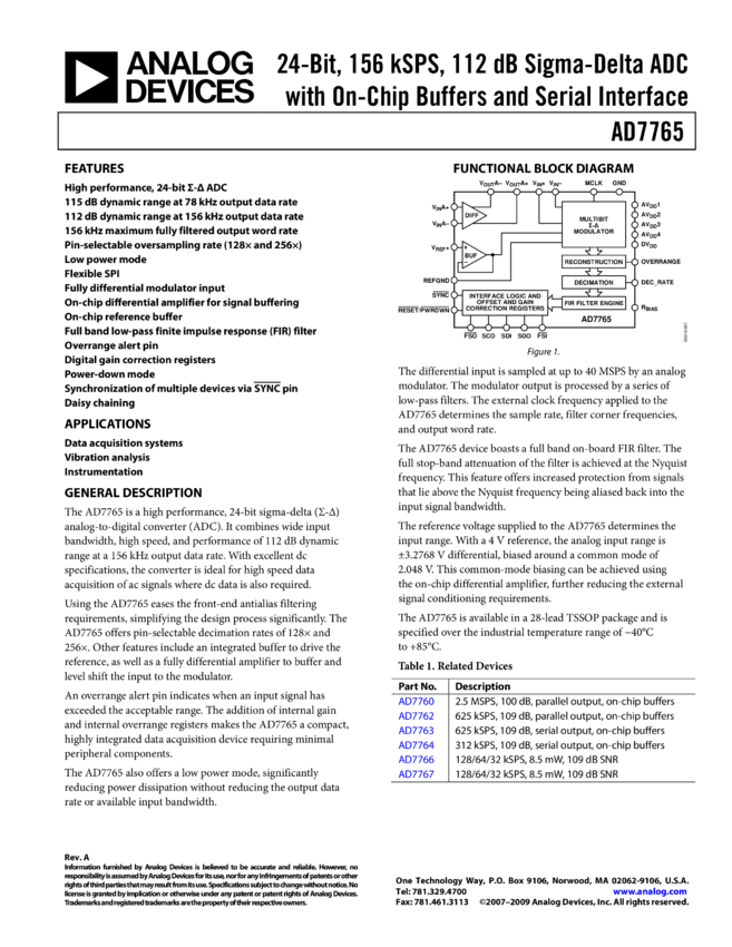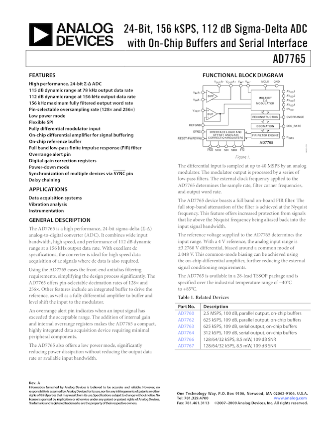 AD7765: 24-Bit, 156 kSPS, 112 dB Sigma-Delta ADC with On-Chip Buffers and Serial Interface