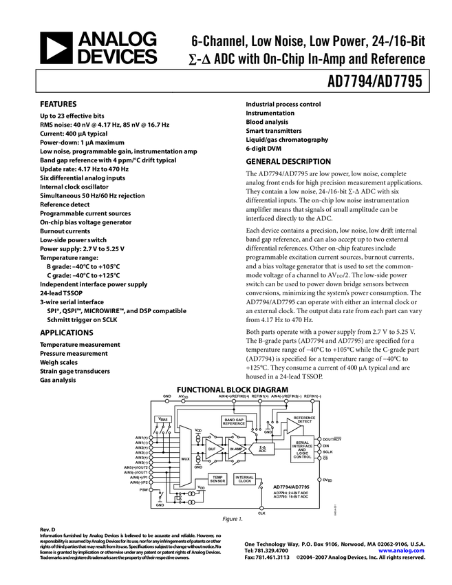 AD7794: 6-Channel, Low Noise, Low Power, 24-Bit Sigma Delta ADC with On-Chip In-Amp and Reference