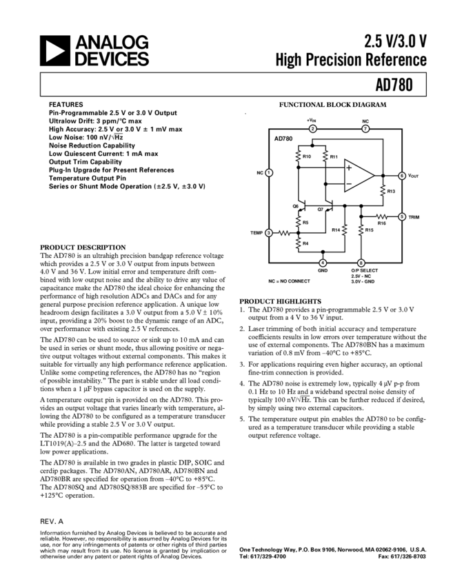 PMIC - napięcie odniesienia Analog Devices AD780ANZ AD780ANZ, 1 szt.