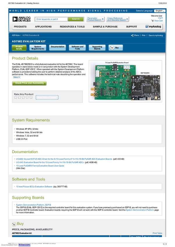 Analog Devices EVAL-AD7982-PMDZ Płytka rozwojowa 1 szt.