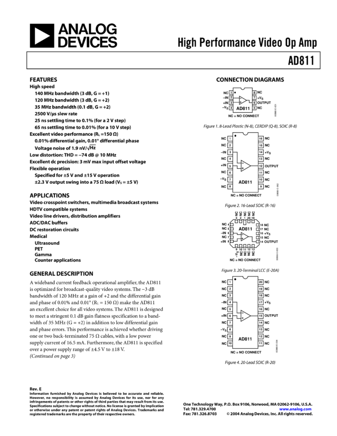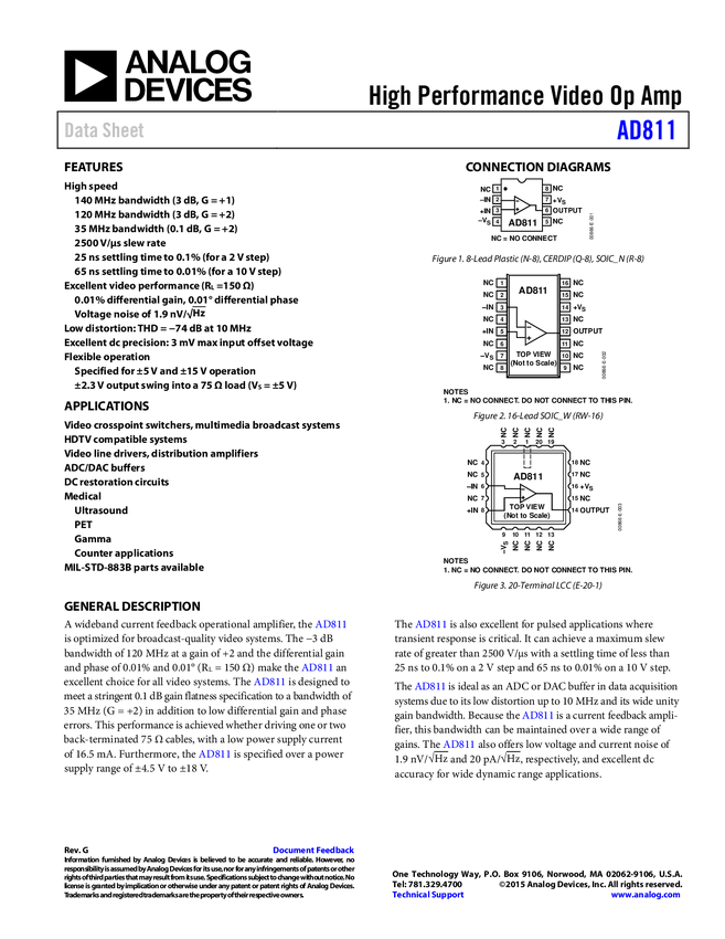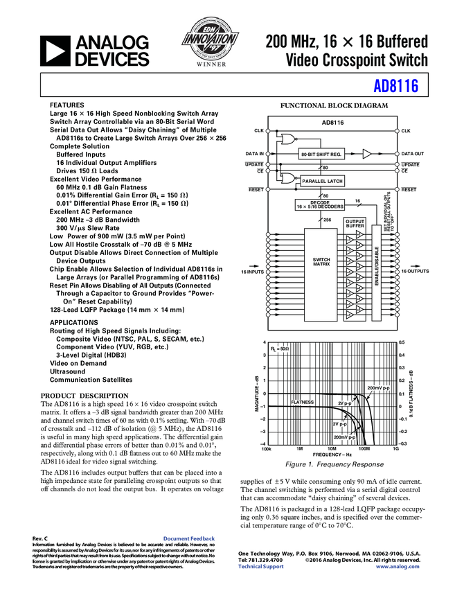 Low Cost, 225 MHz, 16 × 16 Crosspoint Switch, G=+1