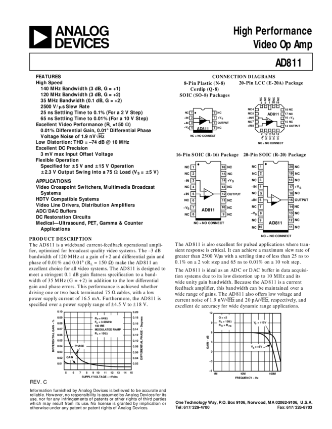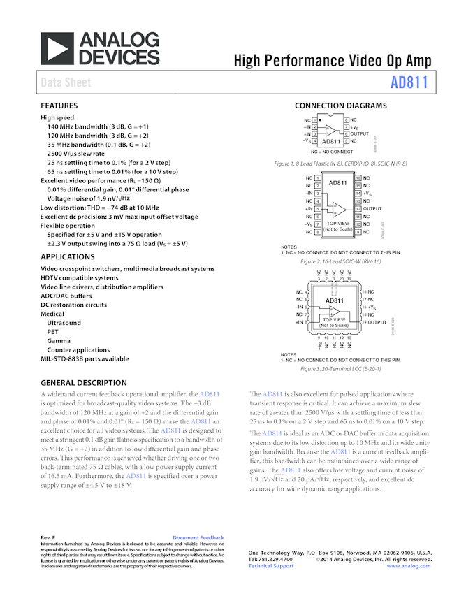 Audio/Video 60MHz 16 x 16 Crosspoint Switch
